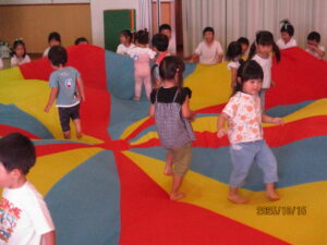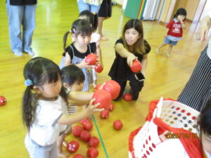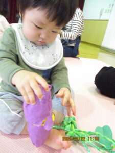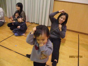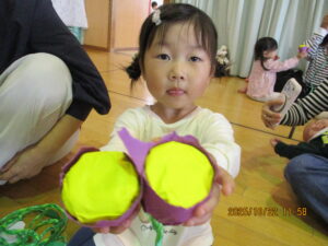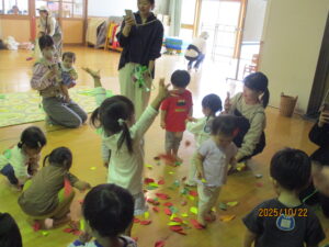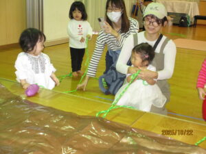 2026-01-08 子育て支援秋冬 ☆子育てイベント秋冬☆ 食欲の秋!運動の秋!ワクワク嬉しいクリスマス☆ 季節感を味わいながら、親子で楽しく過ごしました。 ~運動会ごっこ~ バルーン、玉入れ、かけっこに挑戦!! ~芋ほり遊び~ 芋ほり、落ち葉遊び、焼き芋…仲良く半分こに♡ ~ハロウィーン遊び~ 可愛いプチ仮装でニコニコです♡ ~クリスマス会&誕生会~ 在園児の合奏や劇を見たり、リトミックや楽器遊びを楽しみました☆